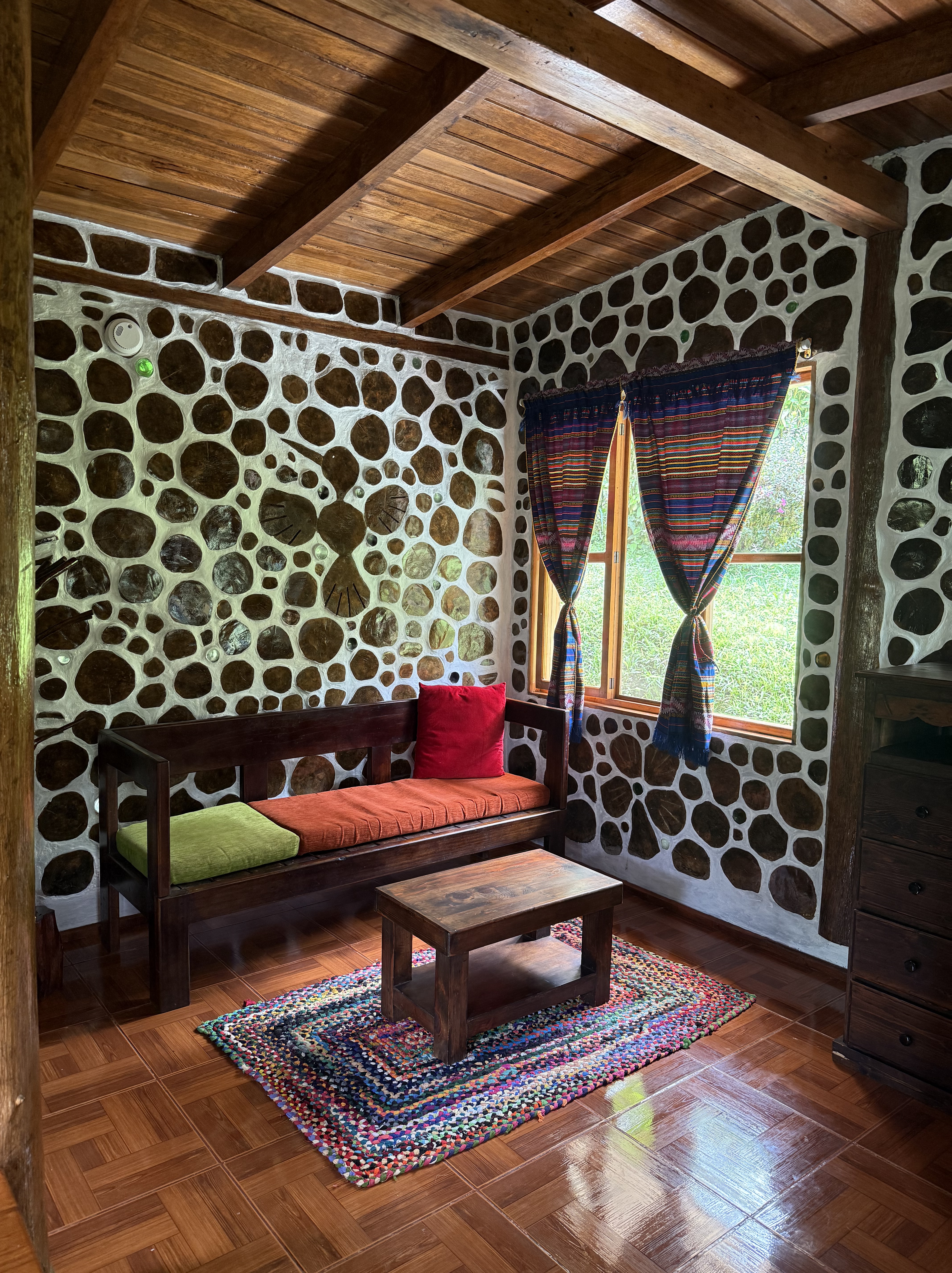 La Lomita has 7 main buildings for use by guests: The House, a Cabin, 3 Eco-Cabanas, a private restaurant and a large studio room. There is also a spring fed pool and sauna for use by all guests.
