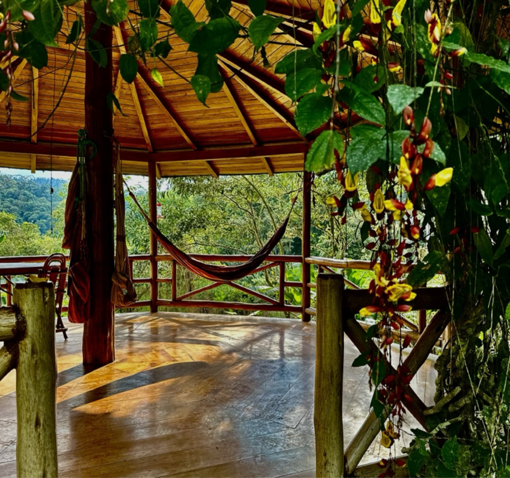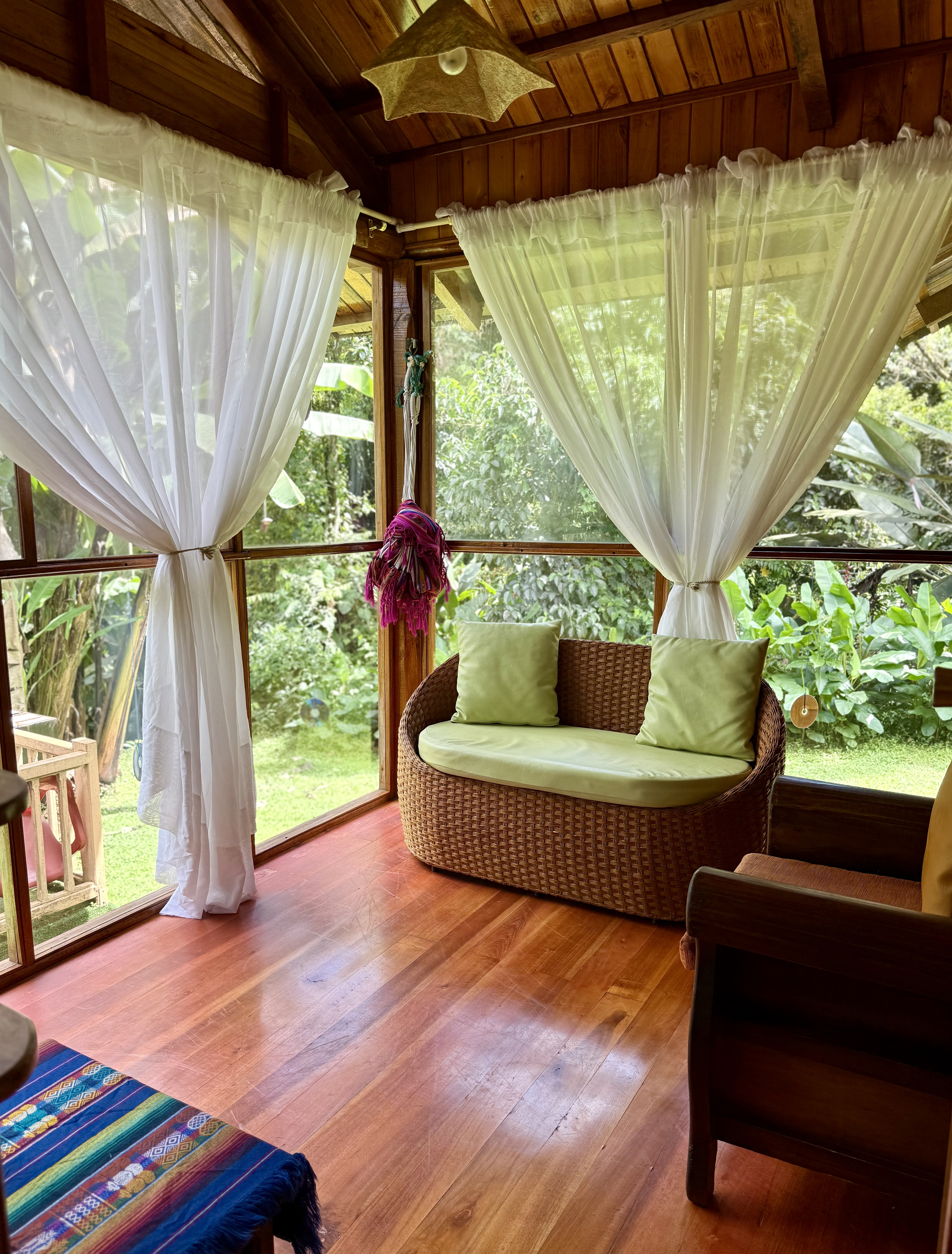 The studio is fully enclosed in screen windows, offering a large space for events and meetings while being able to see and hear all the wildlife of Mindo. The big open space is perfect for yoga and mediation. It is also where the masseuse will set up their massage tables if you’re interested in enhancing the spa experience.